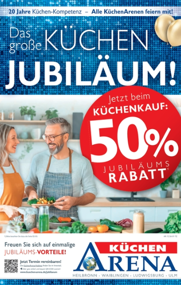Und voller Vorfreude blicken wir nach vorne: Freuen Sie sich in den kommenden Wochen & Monaten auf tolle Jubiläums-Aktionen und -Angebote ! Wir freuen uns darauf, Sie in der KüchenArena Ludwigsburg begrüßen zu dürfen und stehen Ihnen beim Küchenkauf von A bis Z als kompetenter Ansprechpartner zur Seite.